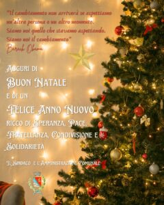 Auguri di Buon Natale e di un felice Anno Nuovo ricco di pace, speranza, fratellanza, condivisione e solidarietà. il Sindaco e l’Amministrazione Comunale