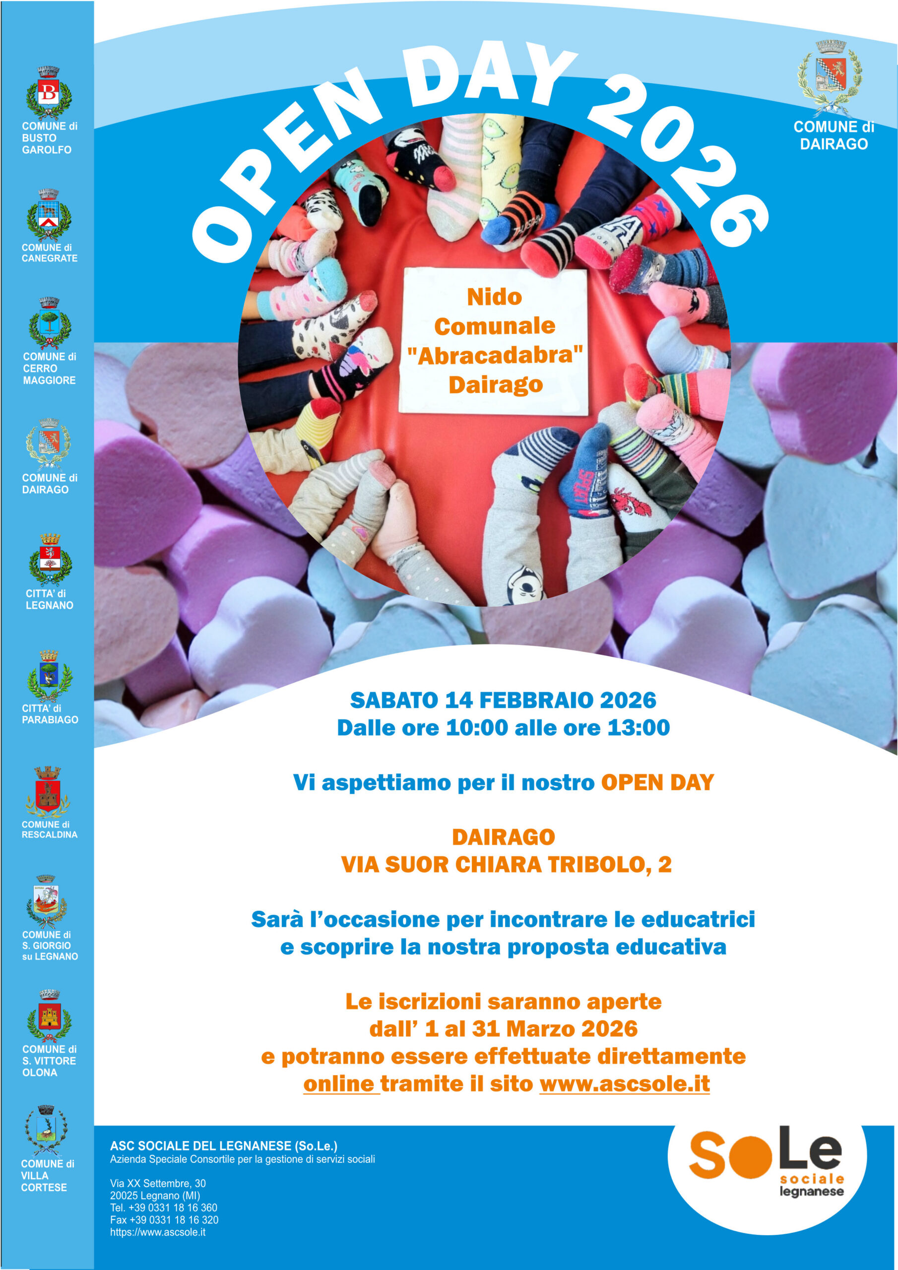 Il Nido “Abracadabra” apre le sue porte alle famiglie del territorio Sabato 14 febbraio 2026 dalle ore 10.00 alle ore 13.00, in via Suo Chiara Tribolo, n. 2.