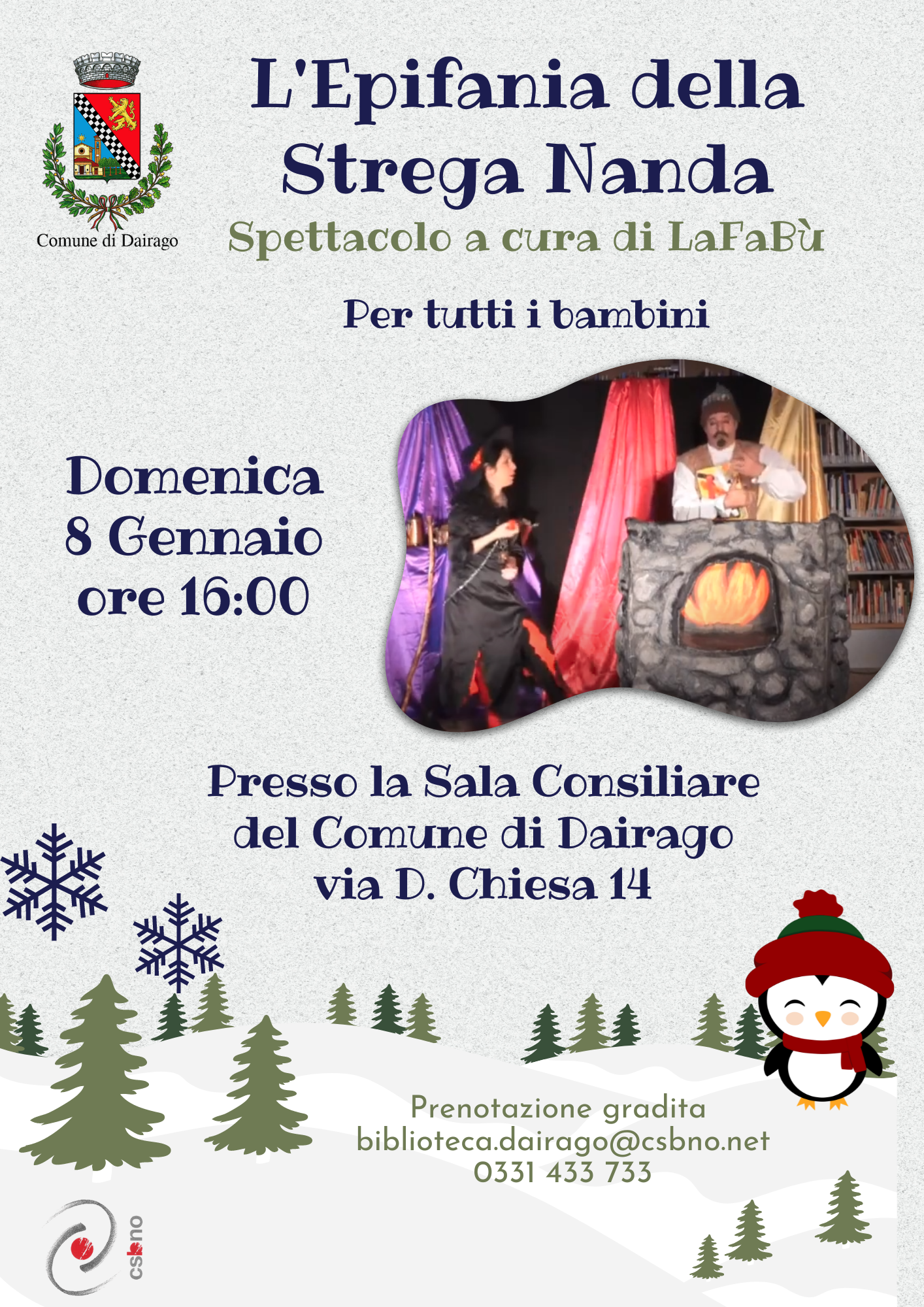 DOMENICA 8 GENNAIO ’23 ORE 16.00 COMUNE DI DAIRAGO, via D. Chiesa 14